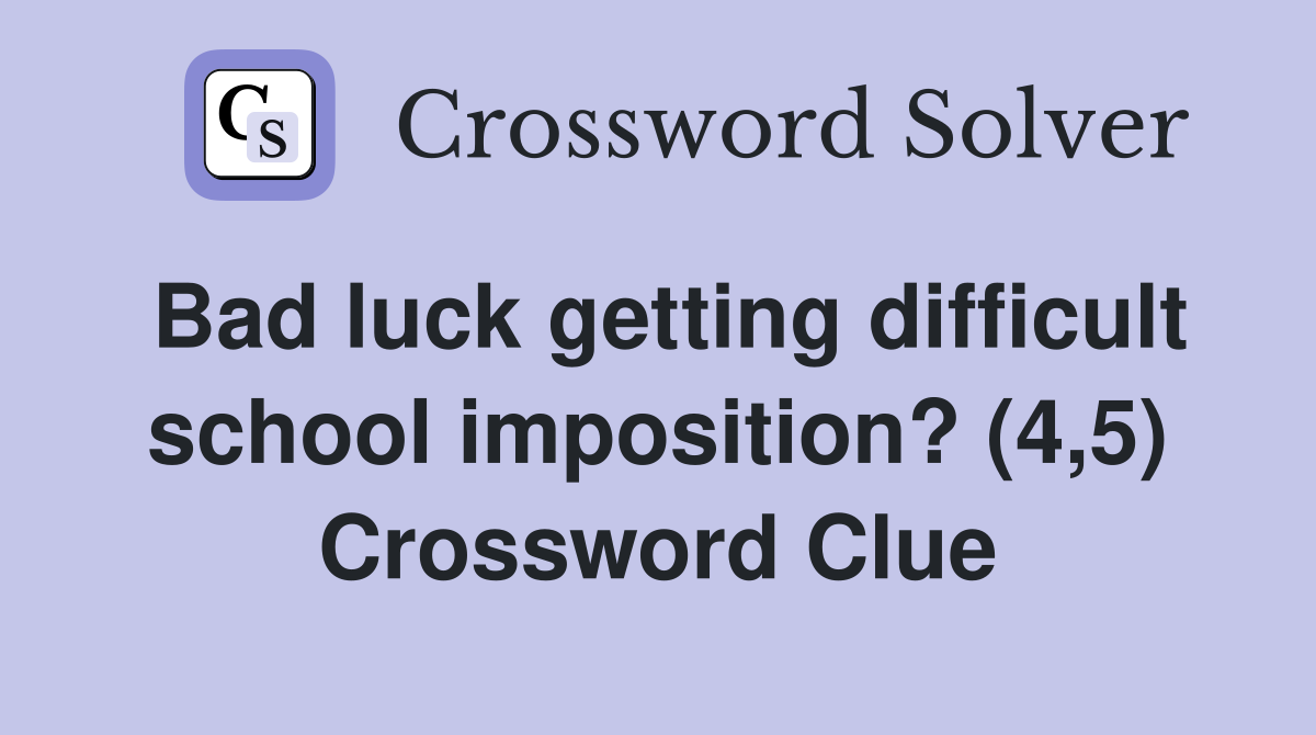 Bad luck getting difficult school imposition? (4 5) Crossword Clue