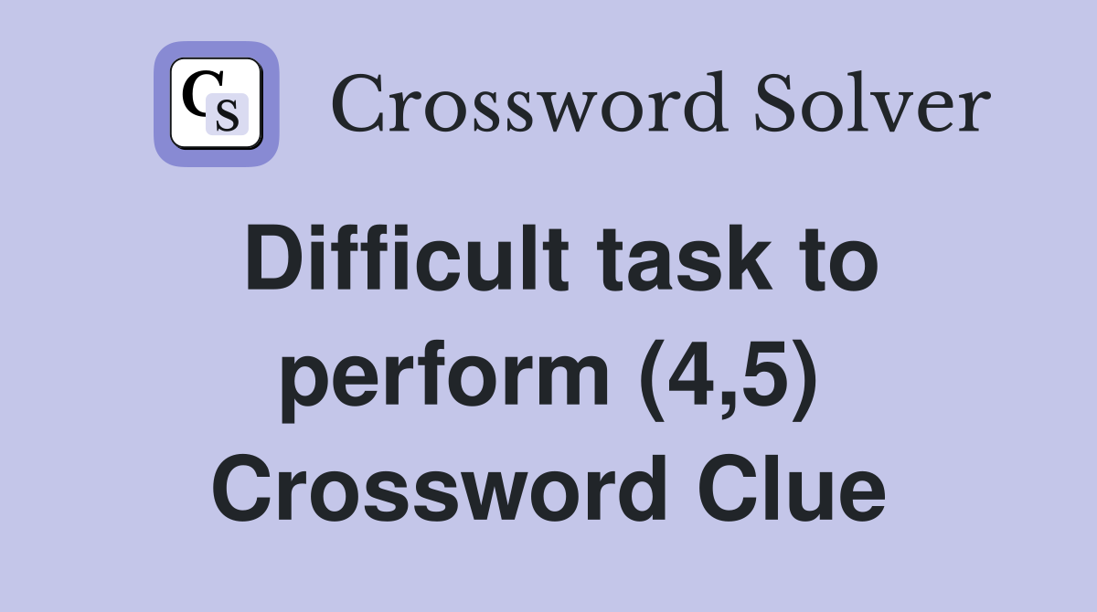 Difficult task to perform (4 5) Crossword Clue Answers Crossword Solver