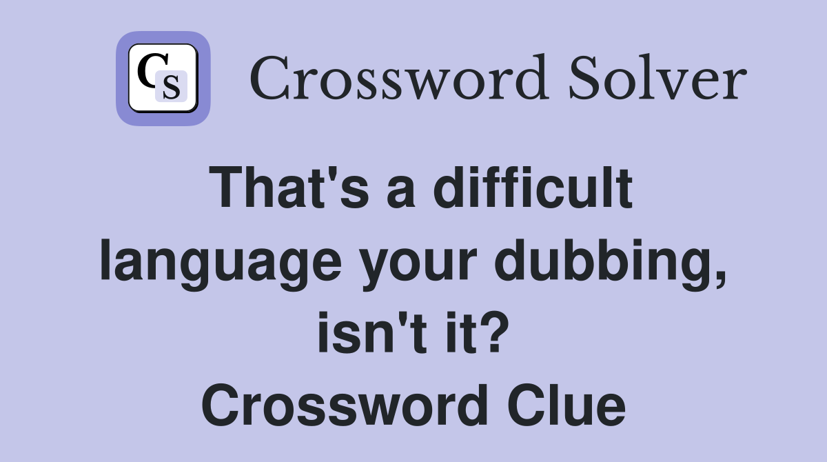 That s a difficult language your dubbing isn t it? Crossword Clue