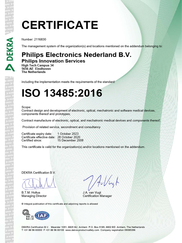 Derka Phillips ISO 13485 2016 certificate 2021 2023 PDF Philips