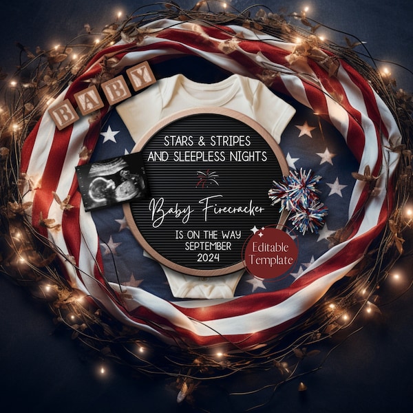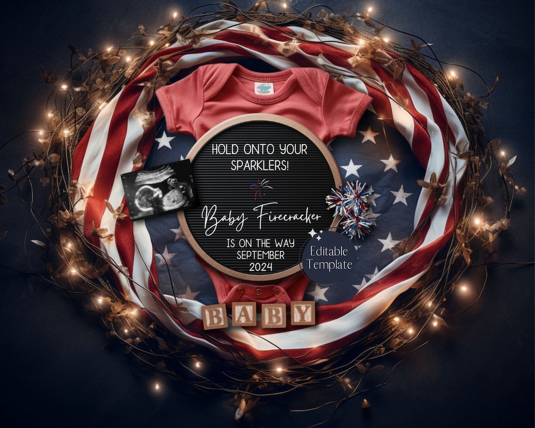 4th of July Pregnancy Announcement Digital American Baby Announcement