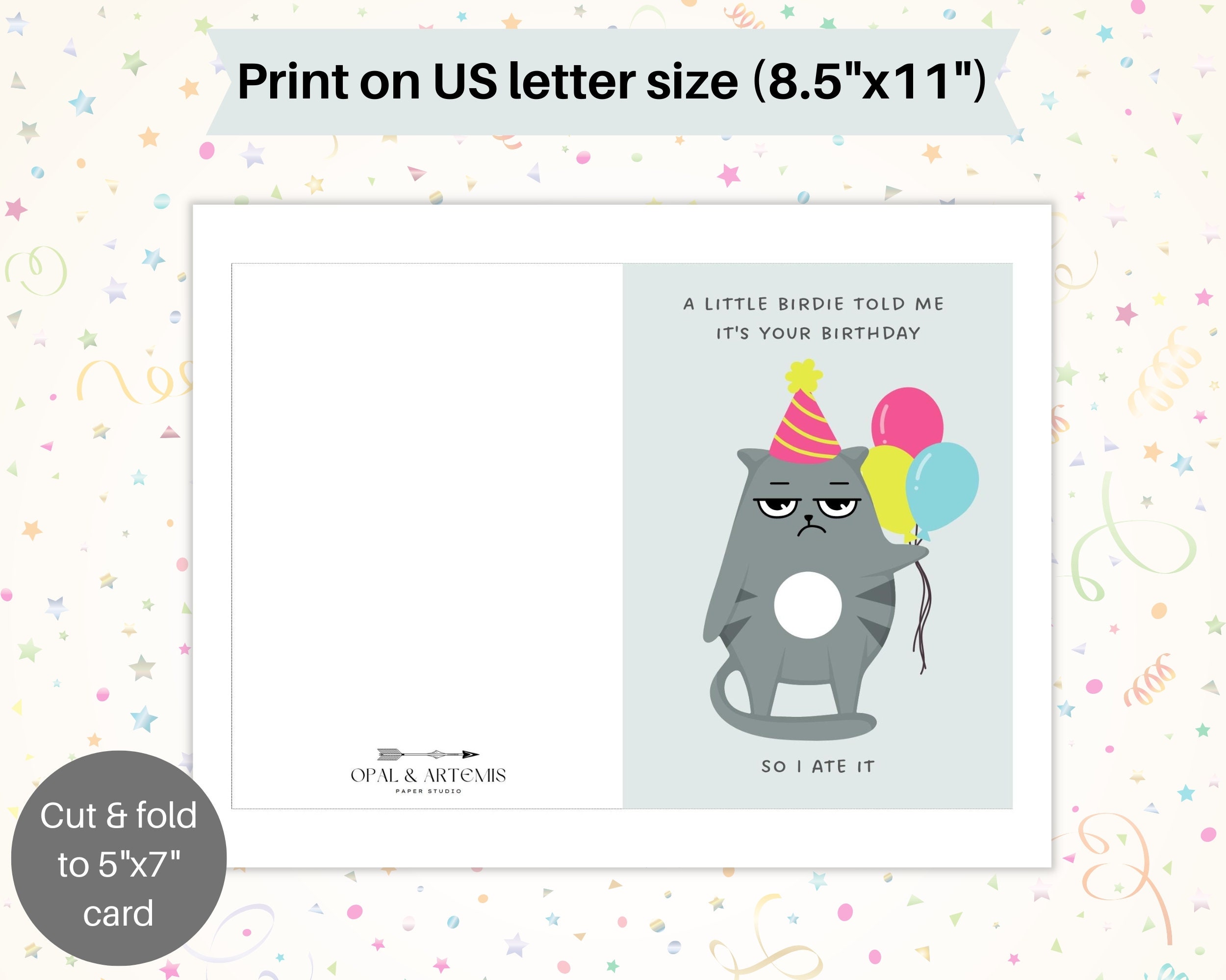 Digital Birthday Greeting Card Printable Cat Ate Birdie Bday Etsy
