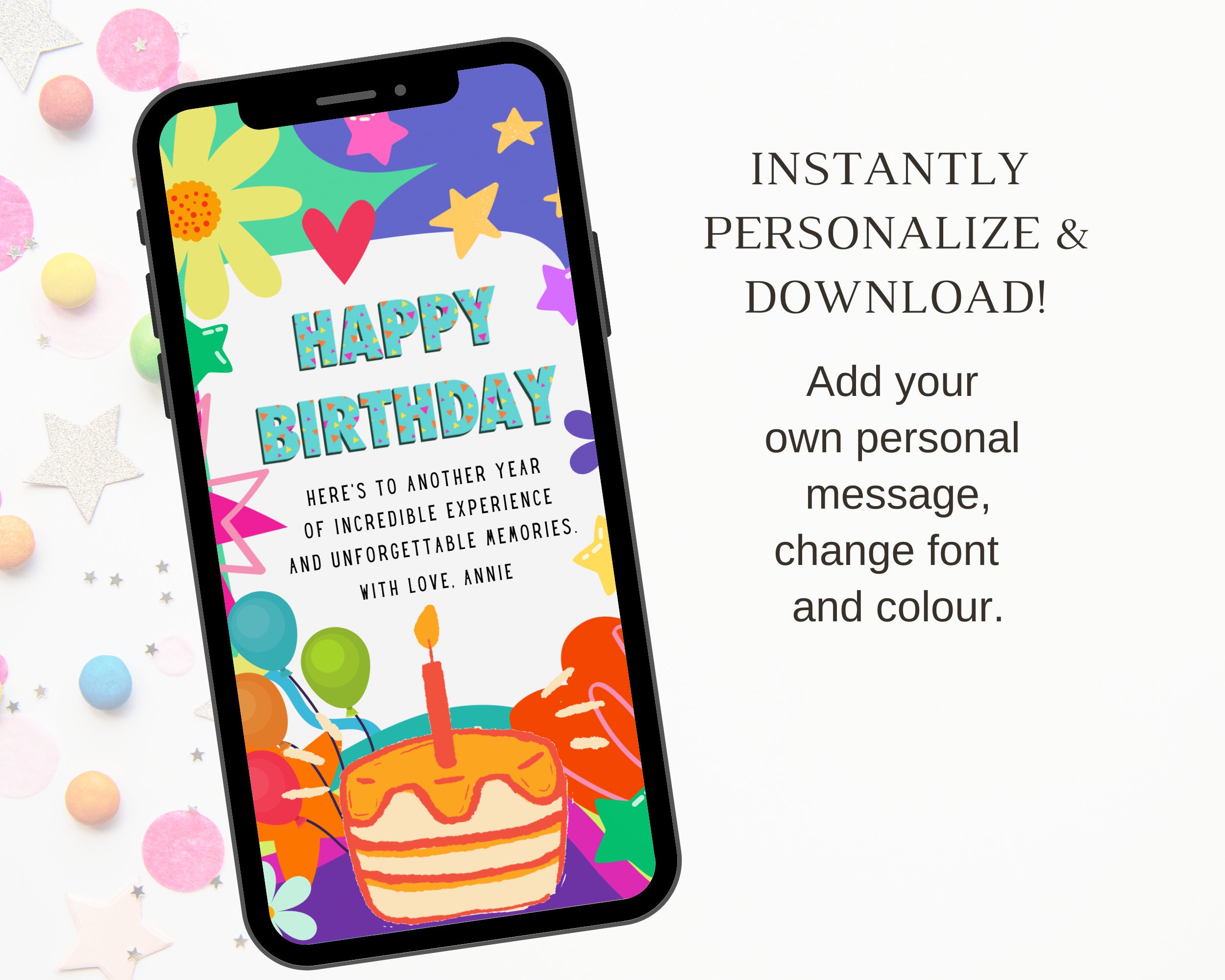 Personalized Animated Birthday Card for Mobile Phone Editable Digital