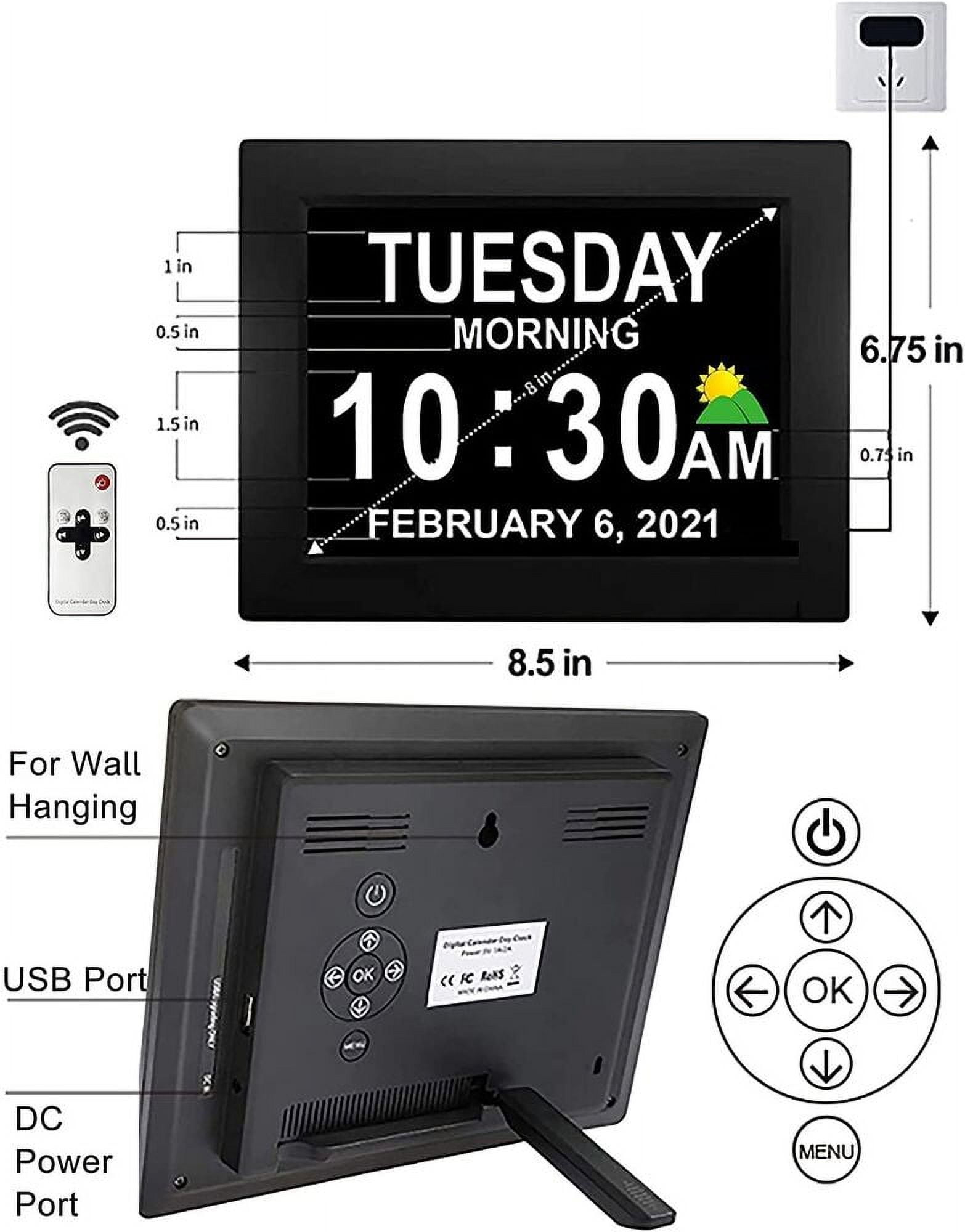 8 quot Display Digital Calendar Day Clock Am Pm Elderl Grandado