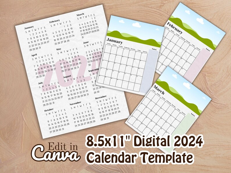 Calendar 2024 Digital Download 2024 Calendar Template Digital
