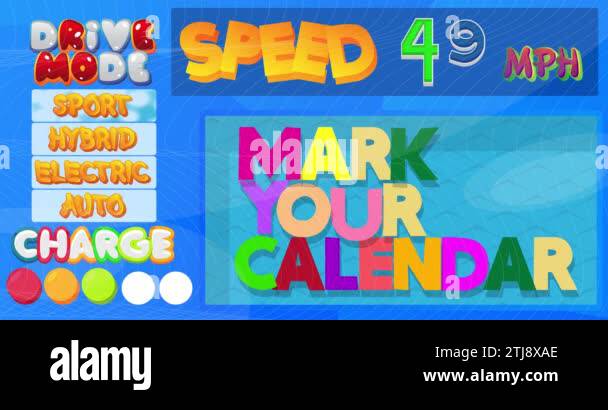 Cartoon Car Dashboard with Mark Your Calendar Text Digital Graphical