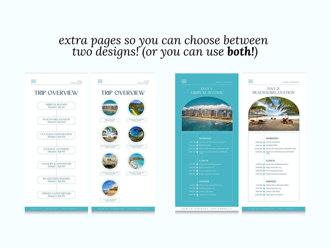 Editable Travel Itinerary Template Instant Download Hawaii Daily