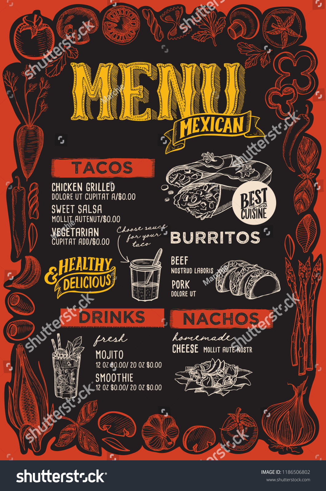 Mexican Menu Template Restaurant On Blackboard Stock Vector (Royalty