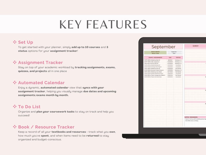 Student Planner Spreadsheet Assignment Tracker Academic Planner