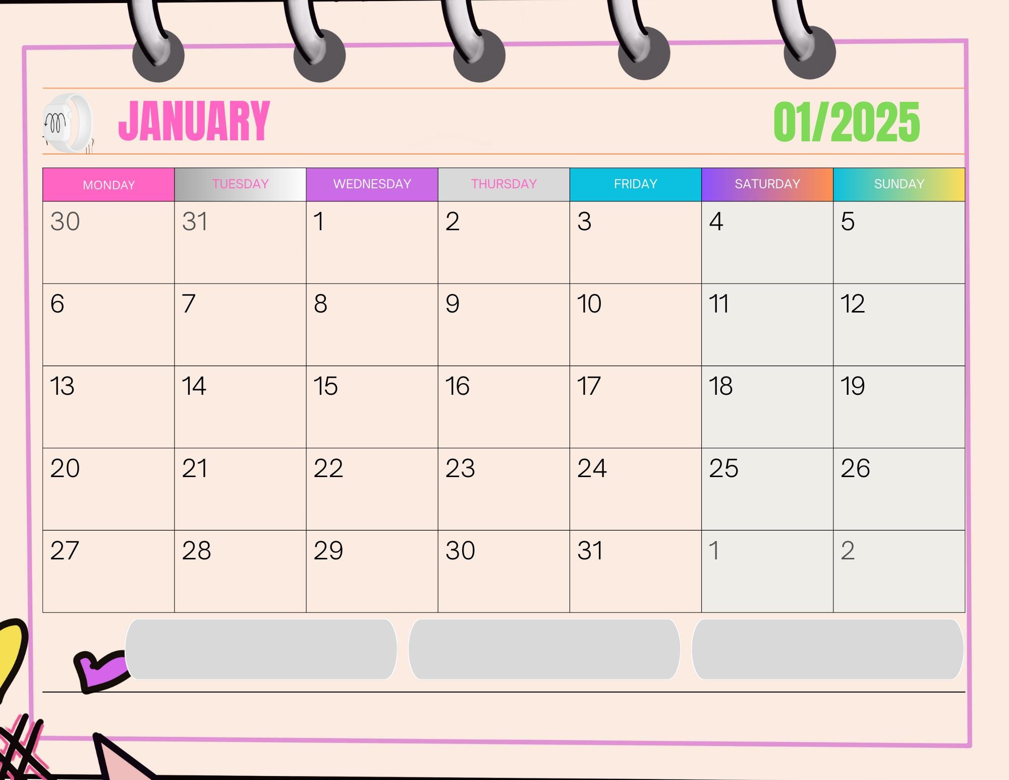 Digital Weekly Calendar Printable Downloadable Etsy