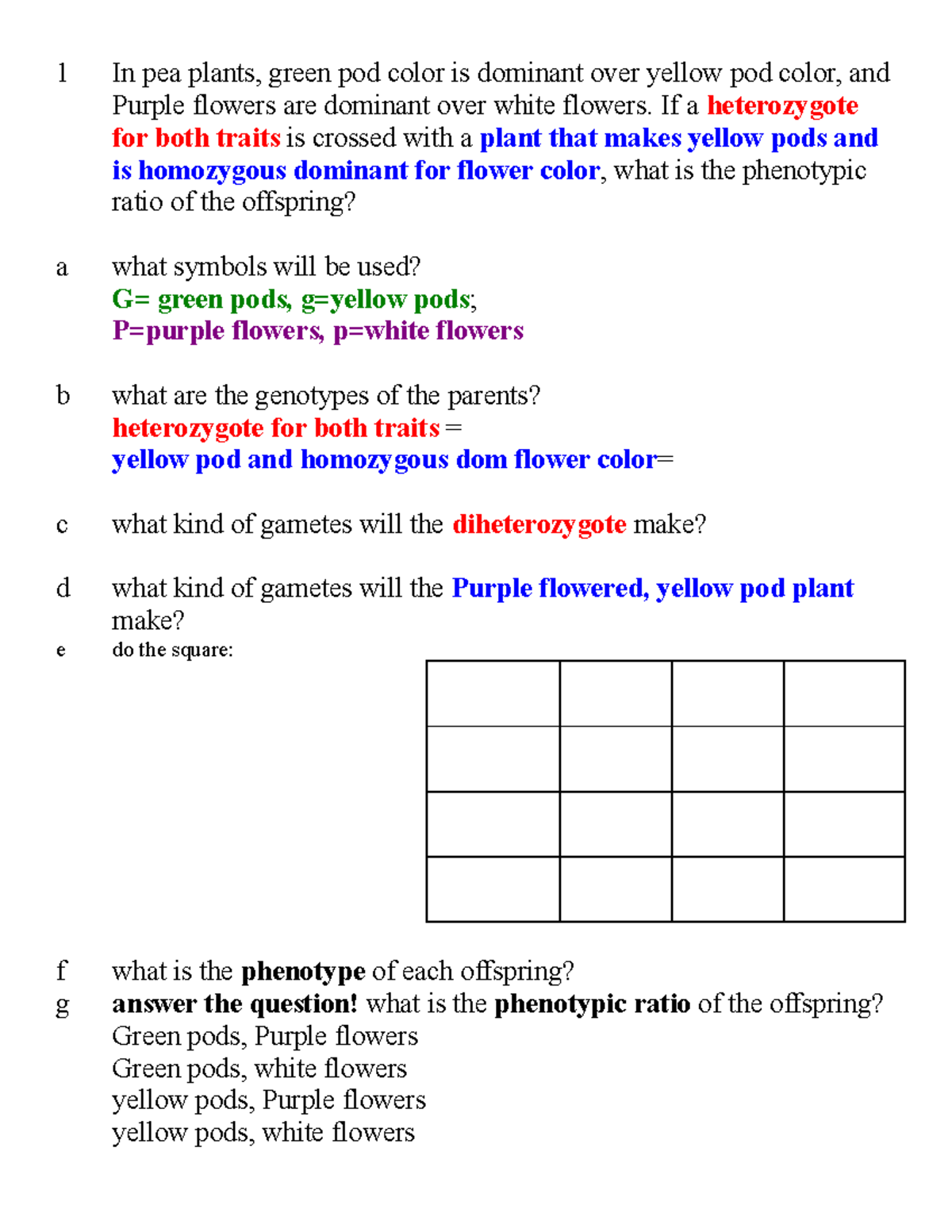 Di HXProblems mendelian genetics dihybrid cross worksheet 1 In pea