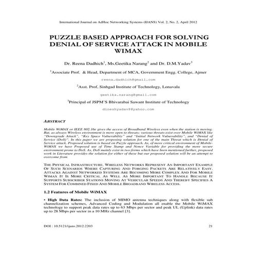 Puzzle Based Approach for Solving Denial of Service Attack in Mobile