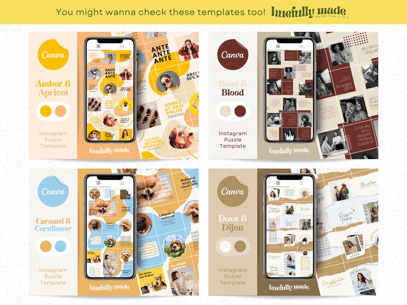 Instagram Puzzle Post Template in Canva Yellow Beige Peach Grid
