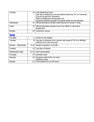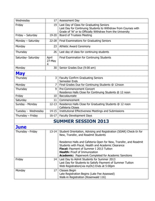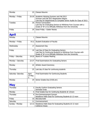 Dillard University Academic Calendar 2012 2013 revised 091112 PDF