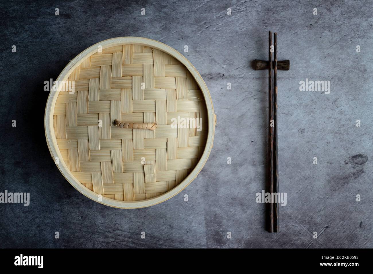 Dim Sum bamboo wood basket Stock Photo Alamy