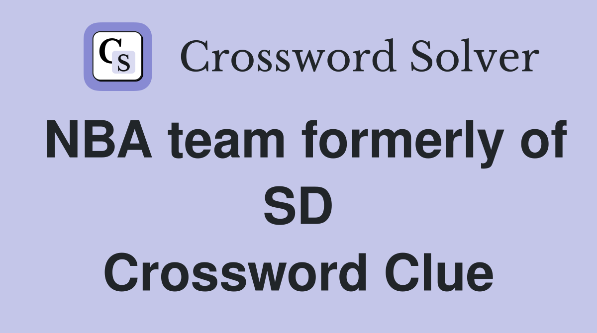 NBA team formerly of SD Crossword Clue Answers Crossword Solver