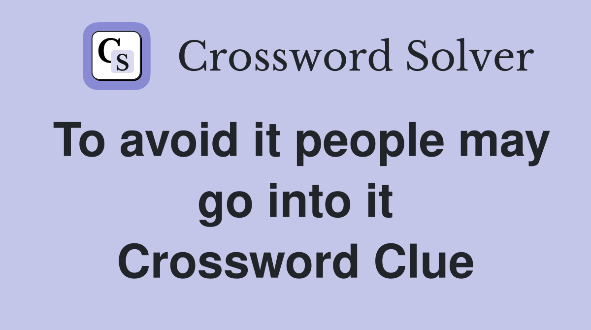 To avoid it people may go into it Crossword Clue Answers Crossword