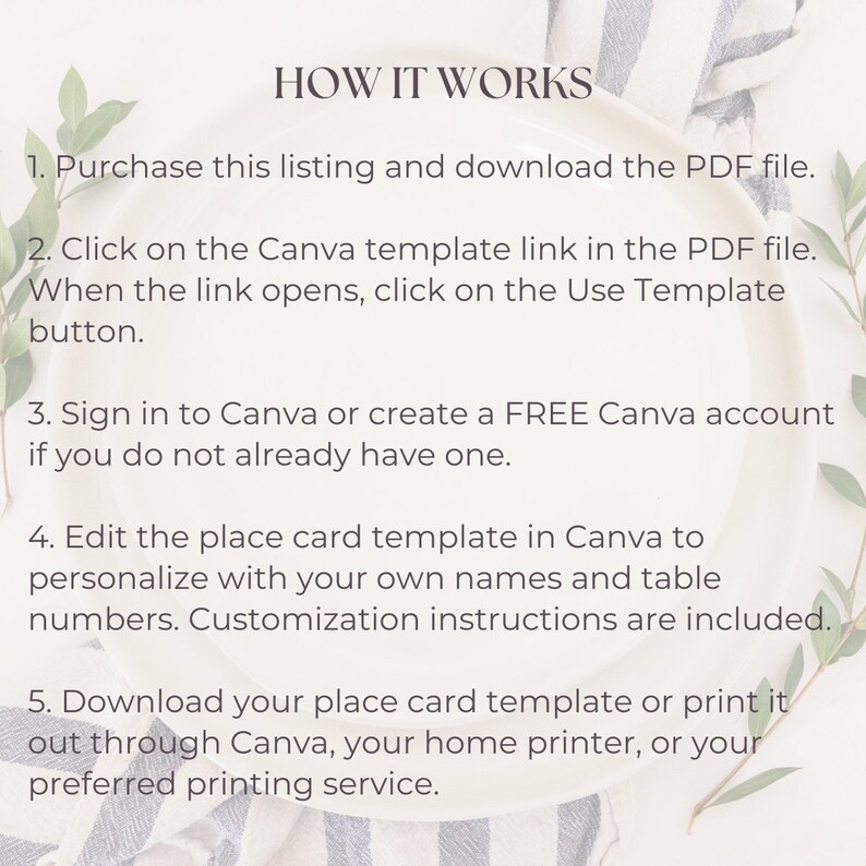 Printable Place Cards Template Canva Custom Digital Instant Download