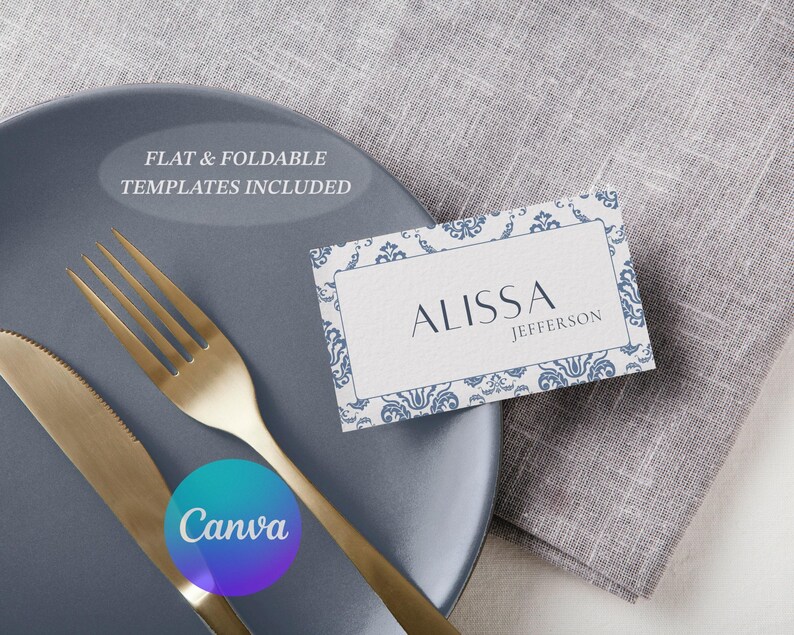 Printable Editable Place Card Canva Template Custom Elegant Digital