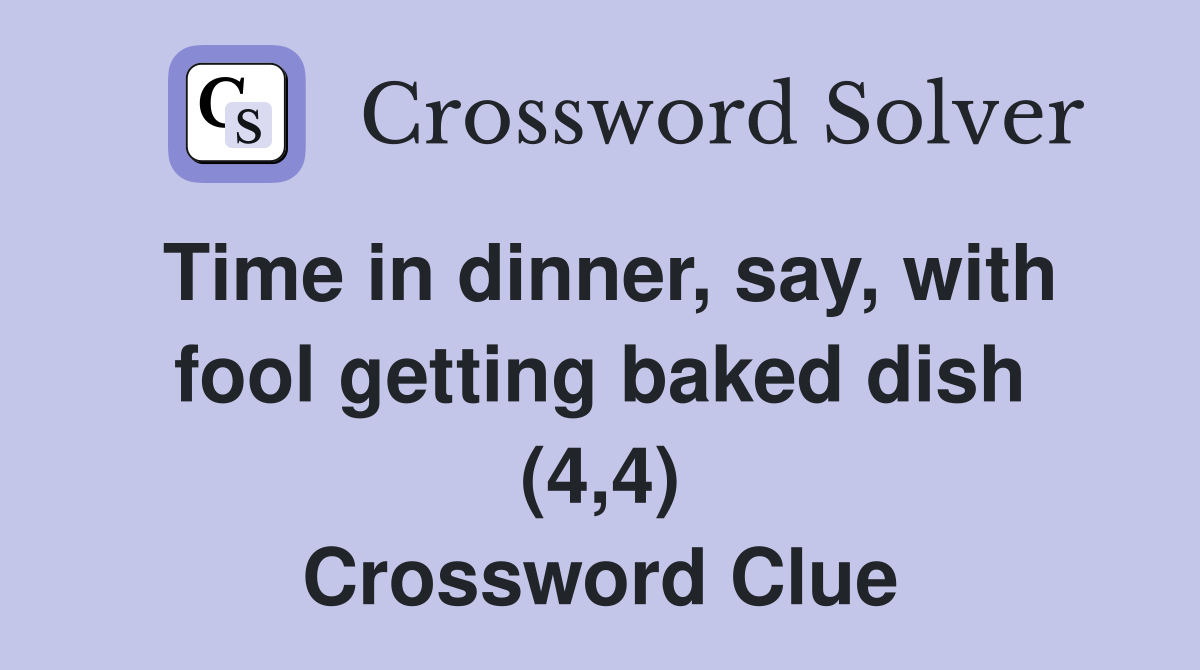Time in dinner say with fool getting baked dish (4 4) Crossword