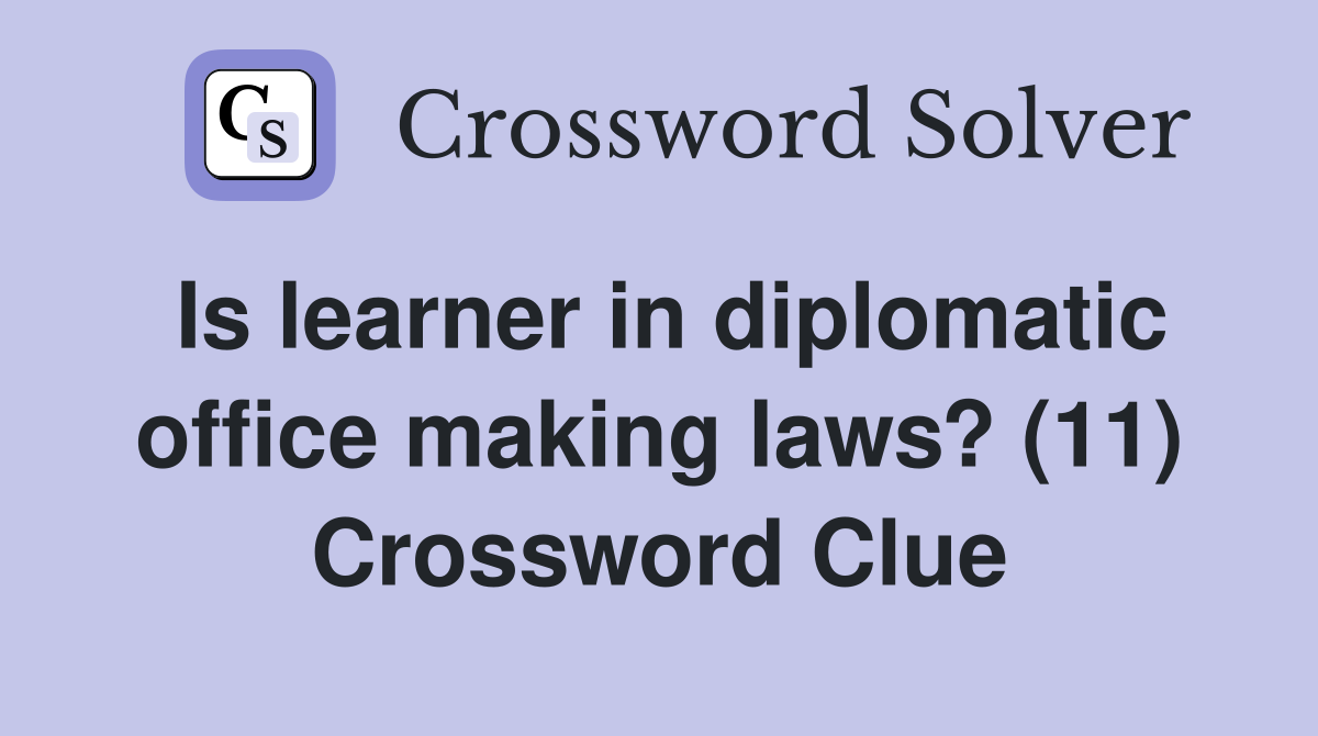 Is learner in diplomatic office making laws? (11) Crossword Clue