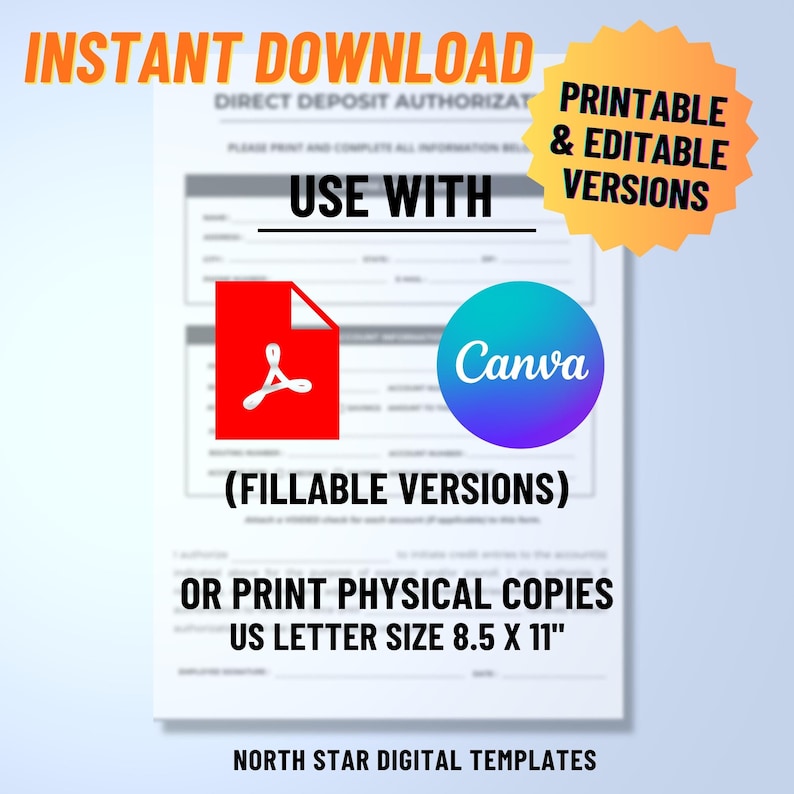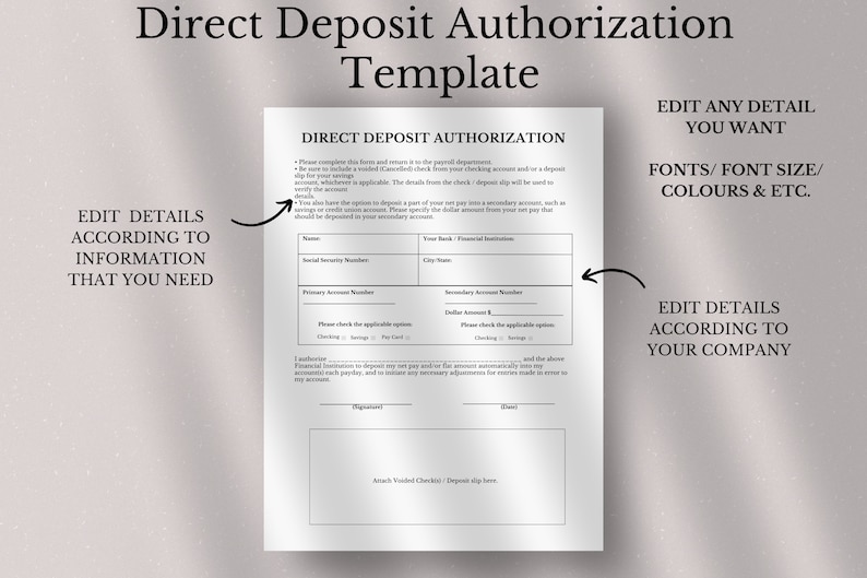 Editable Direct Deposit Authorization Template HR Employee Form (canva