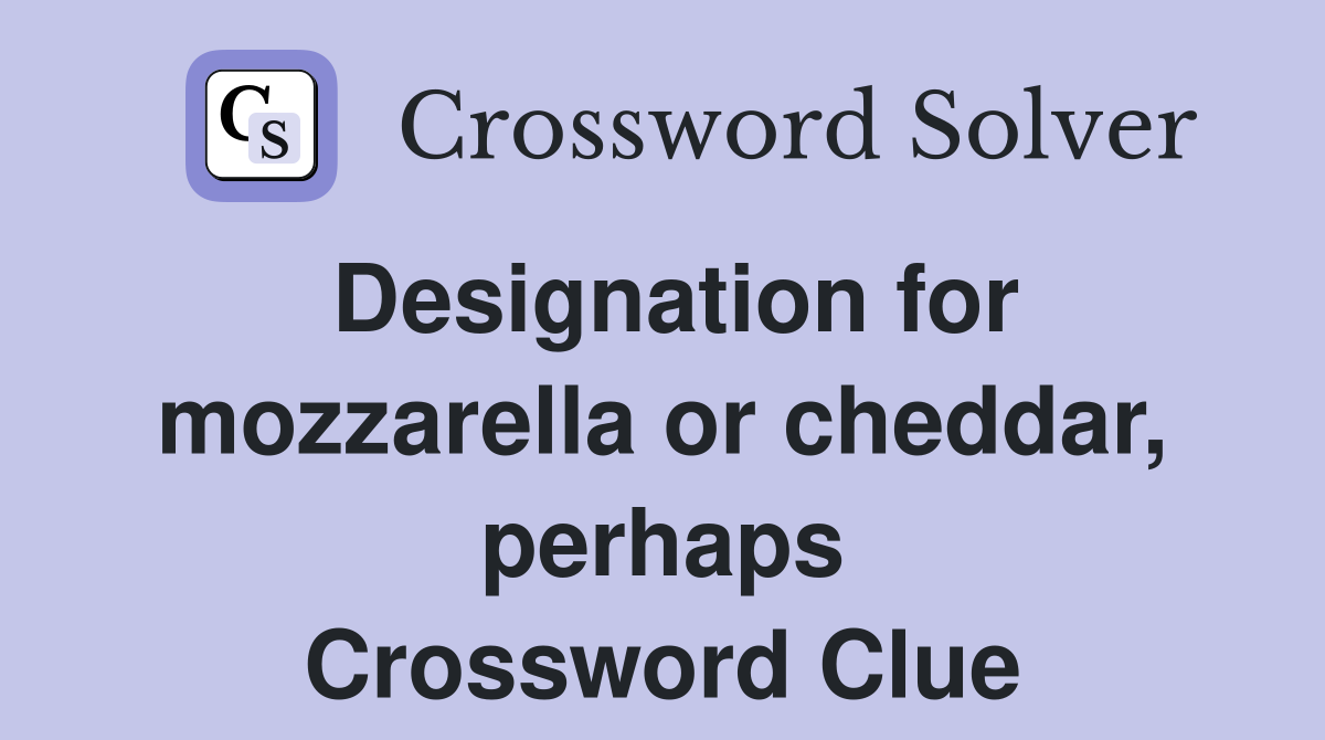 Designation for mozzarella or cheddar perhaps Crossword Clue Answers