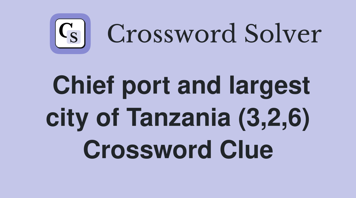 Chief port and largest city of Tanzania (3 2 6) Crossword Clue