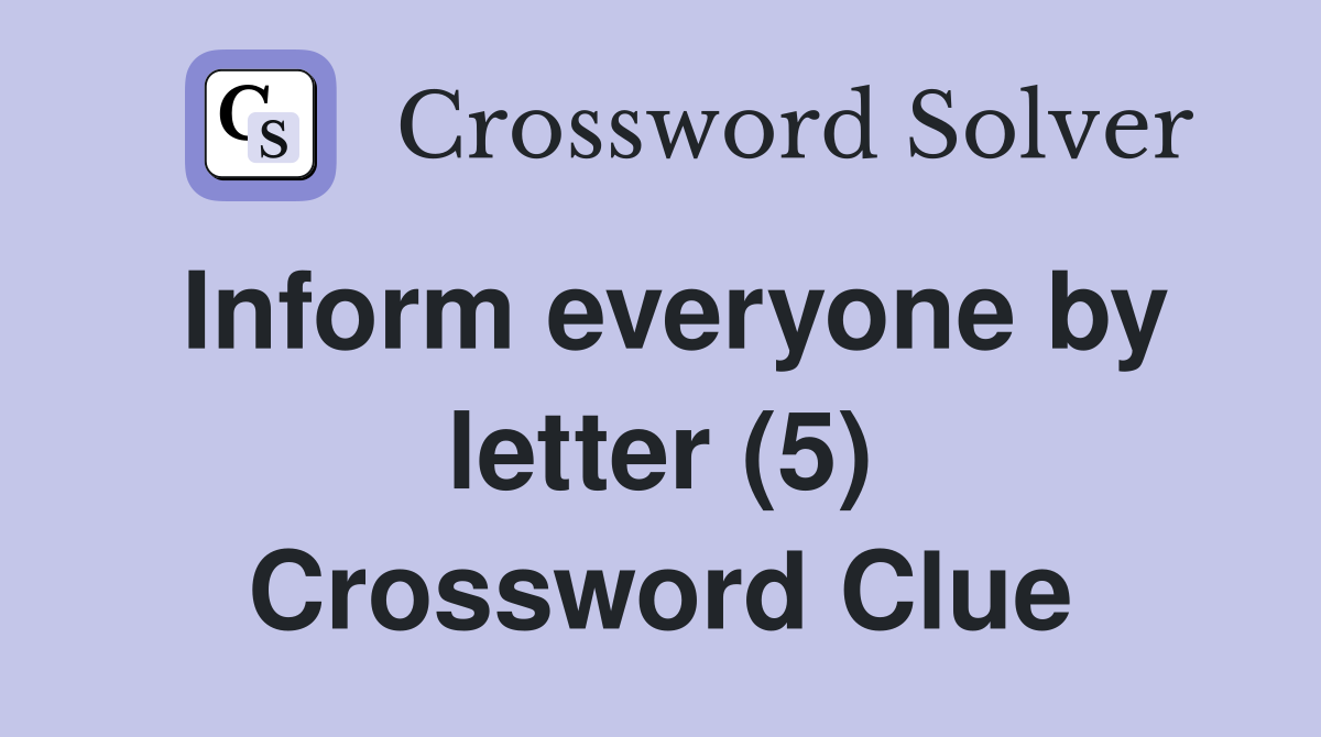 Inform everyone by letter (5) Crossword Clue Answers Crossword Solver