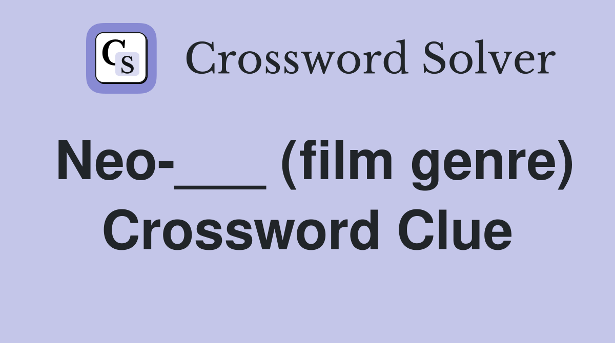 Neo (film genre) Crossword Clue Answers Crossword Solver