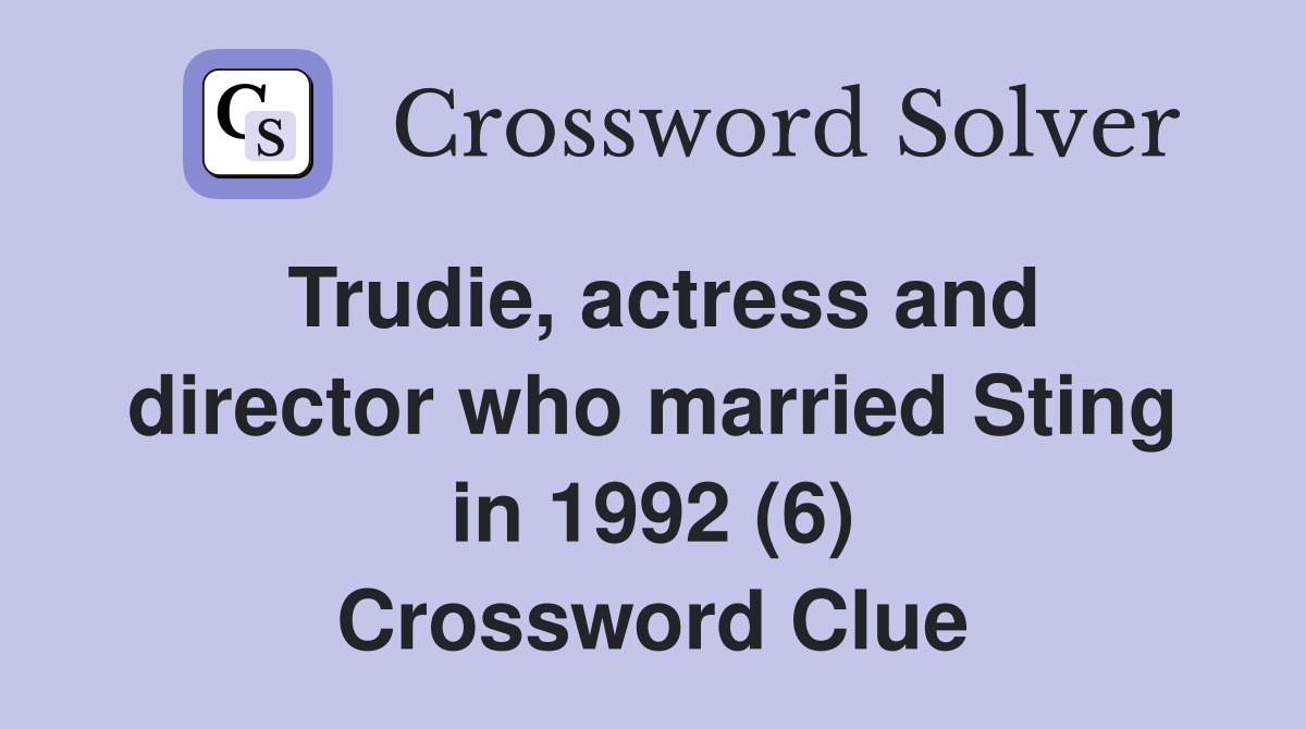 Trudie actress and director who married Sting in 1992 (6) Crossword