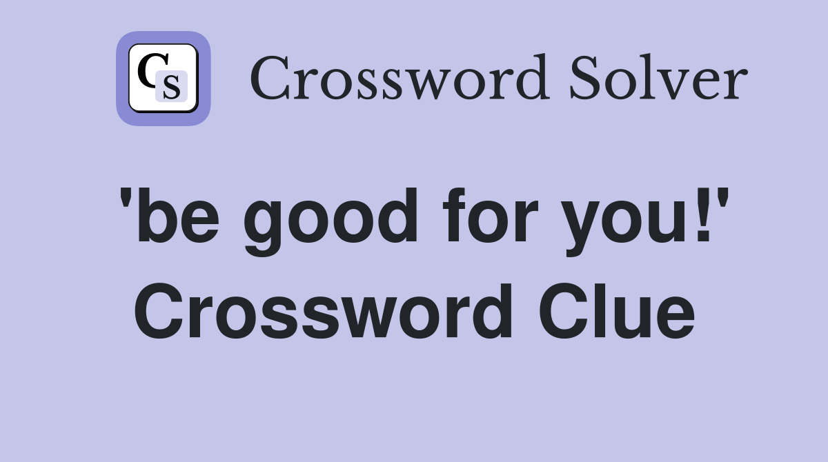 #39 be good for you #39 Crossword Clue Answers Crossword Solver