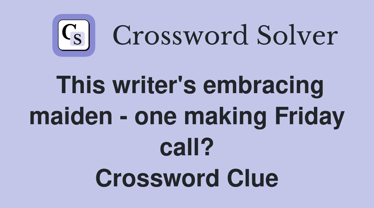 This writer #39 s embracing maiden one making Friday call? Crossword