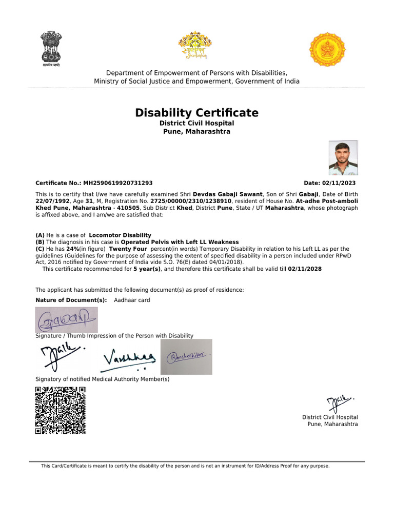 Disability Certificate PDF