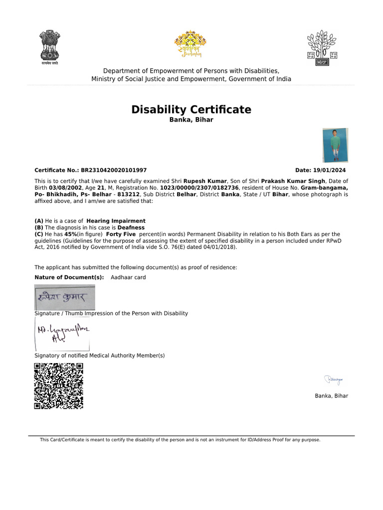 80DD 2024 25 Mithil Gaikwad Disability Certificate 14112022 PDF