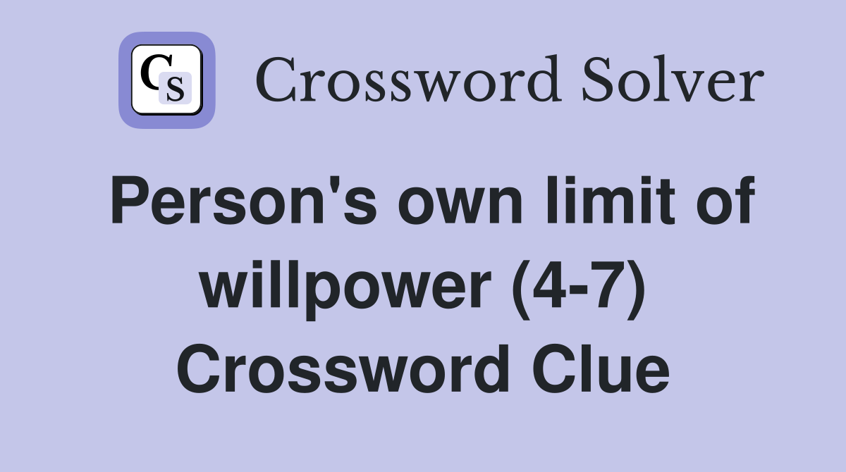 Person #39 s own limit of willpower (4 7) Crossword Clue Answers