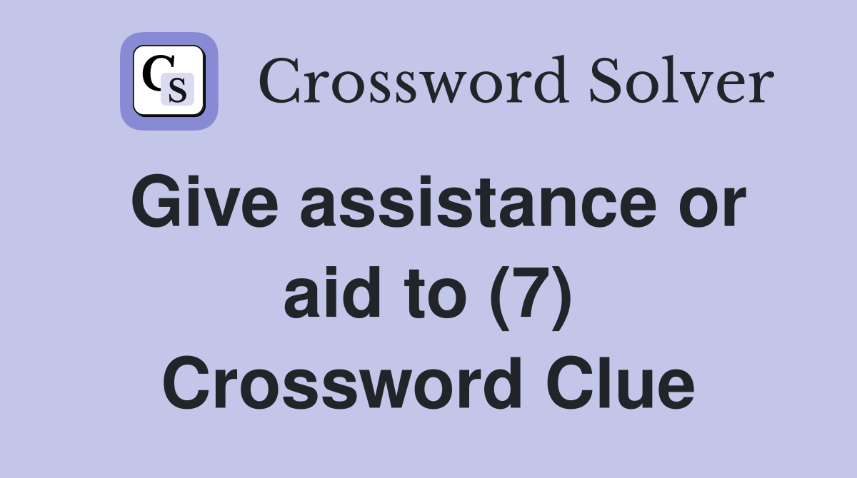 Give assistance or aid to (7) Crossword Clue Answers Crossword Solver
