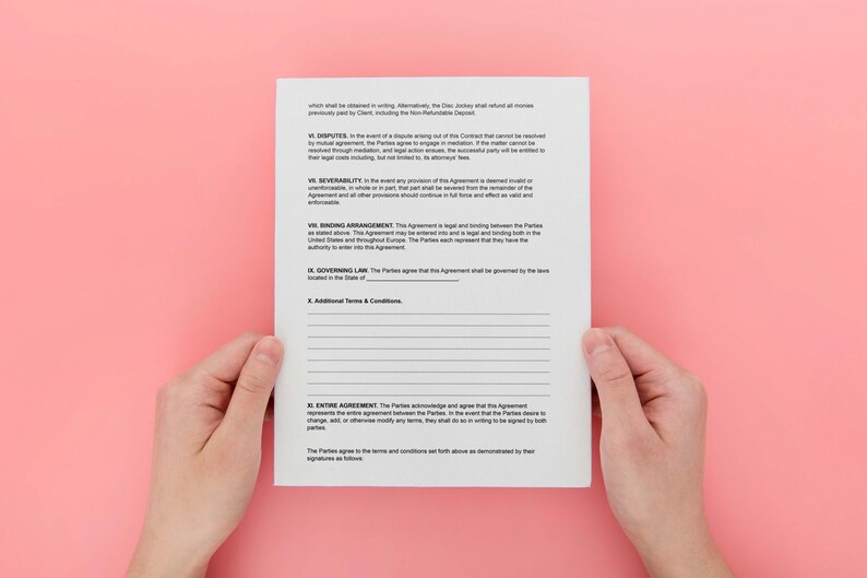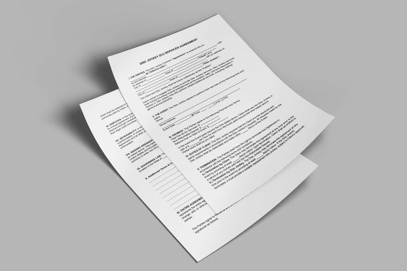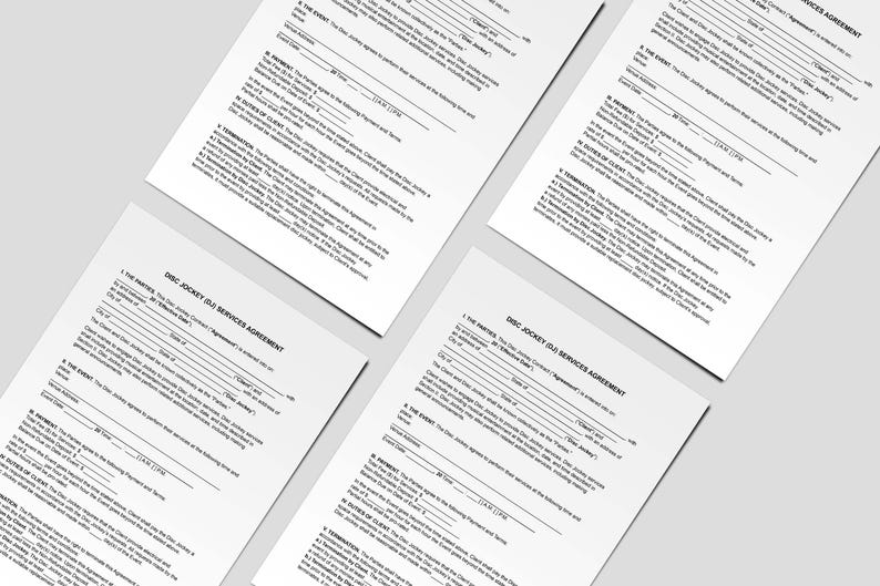 Disc Jockey Contract Template Printable Blank Contract form for Disc