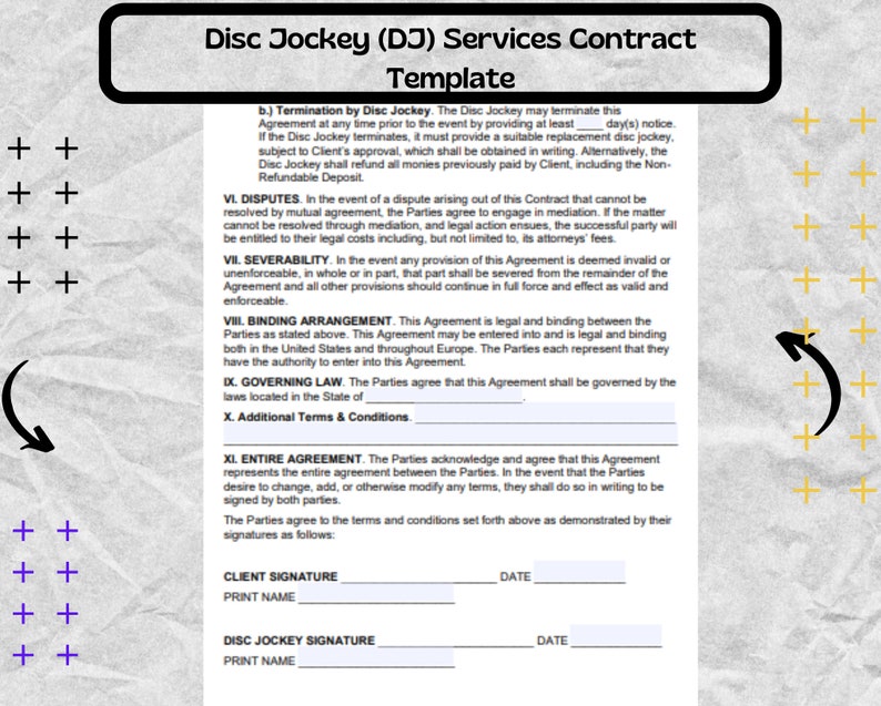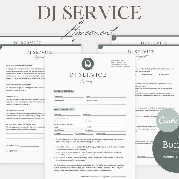 DJ Service Contract Editable DJ Agreement Wedding Dj Contract Disc