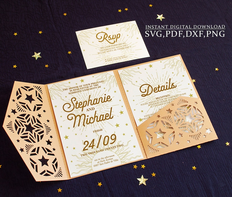Wedding Disco Invitation Template SVG Trifold Stars 5x7 Etsy