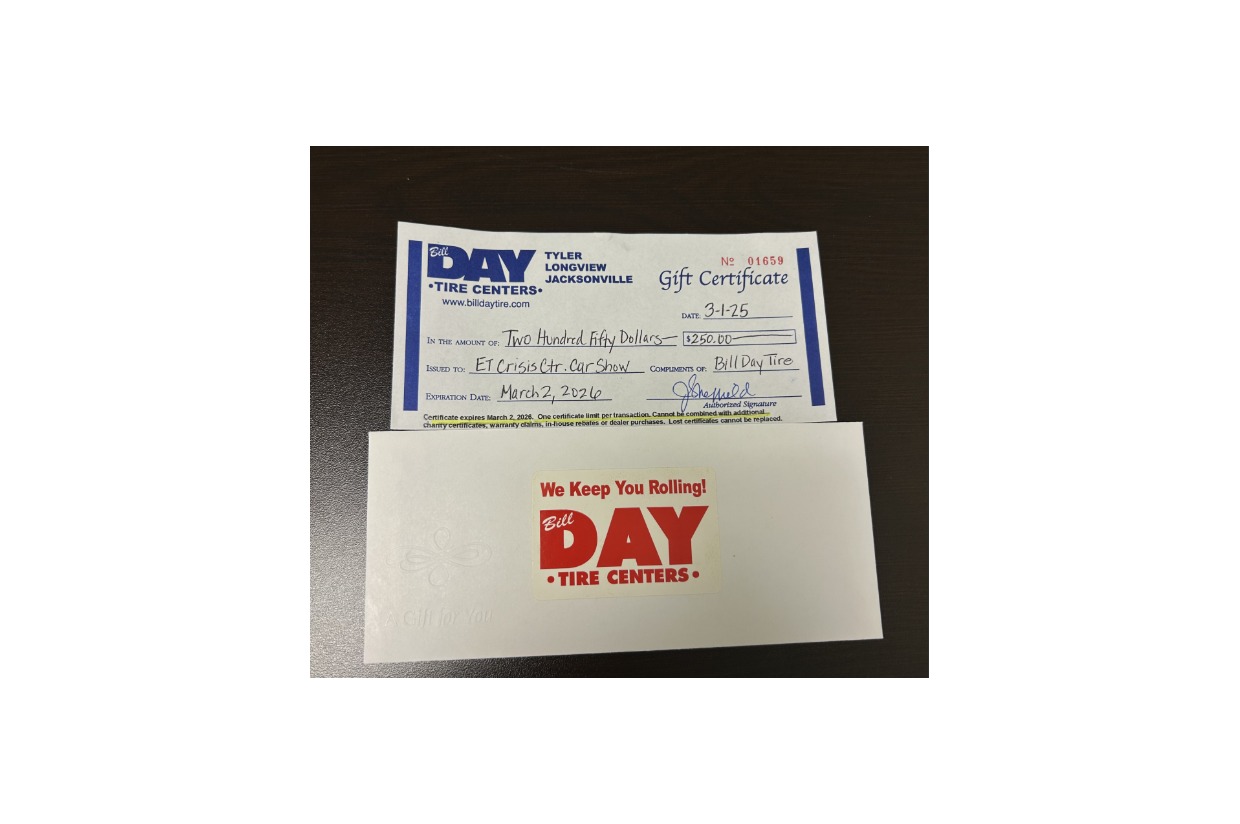 Bill Day Tire Gift Certificate East Texas Auto Cycle Show Auction