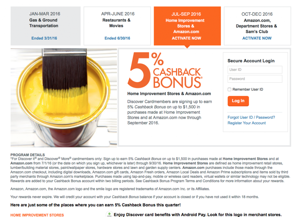 Discover 5% Cashback Calendar 2018: Categories That Earn 5% Cash Back