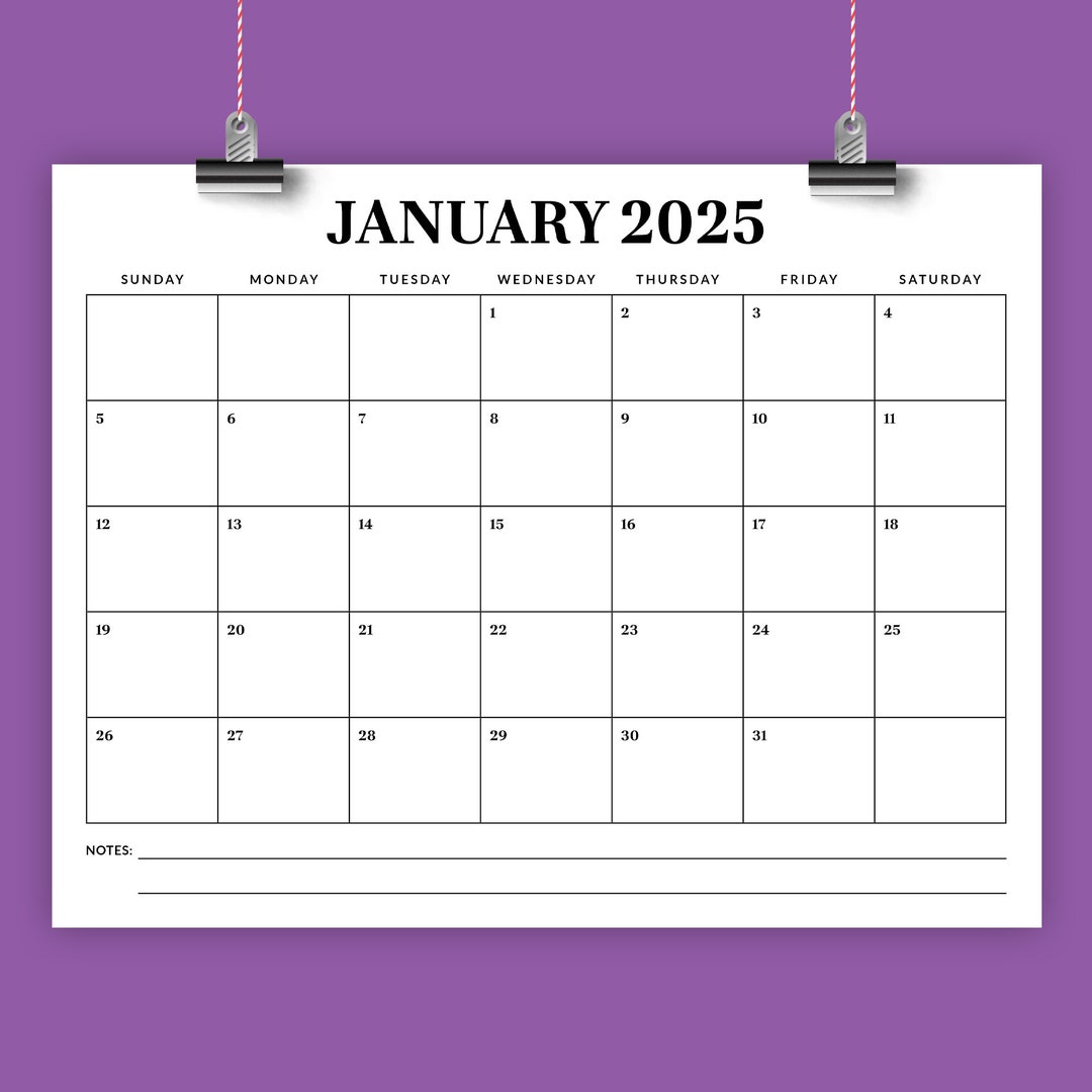 SALE 2025 8 5 X 11 Inch Calendar Template INSTANT DOWNLOAD Modern