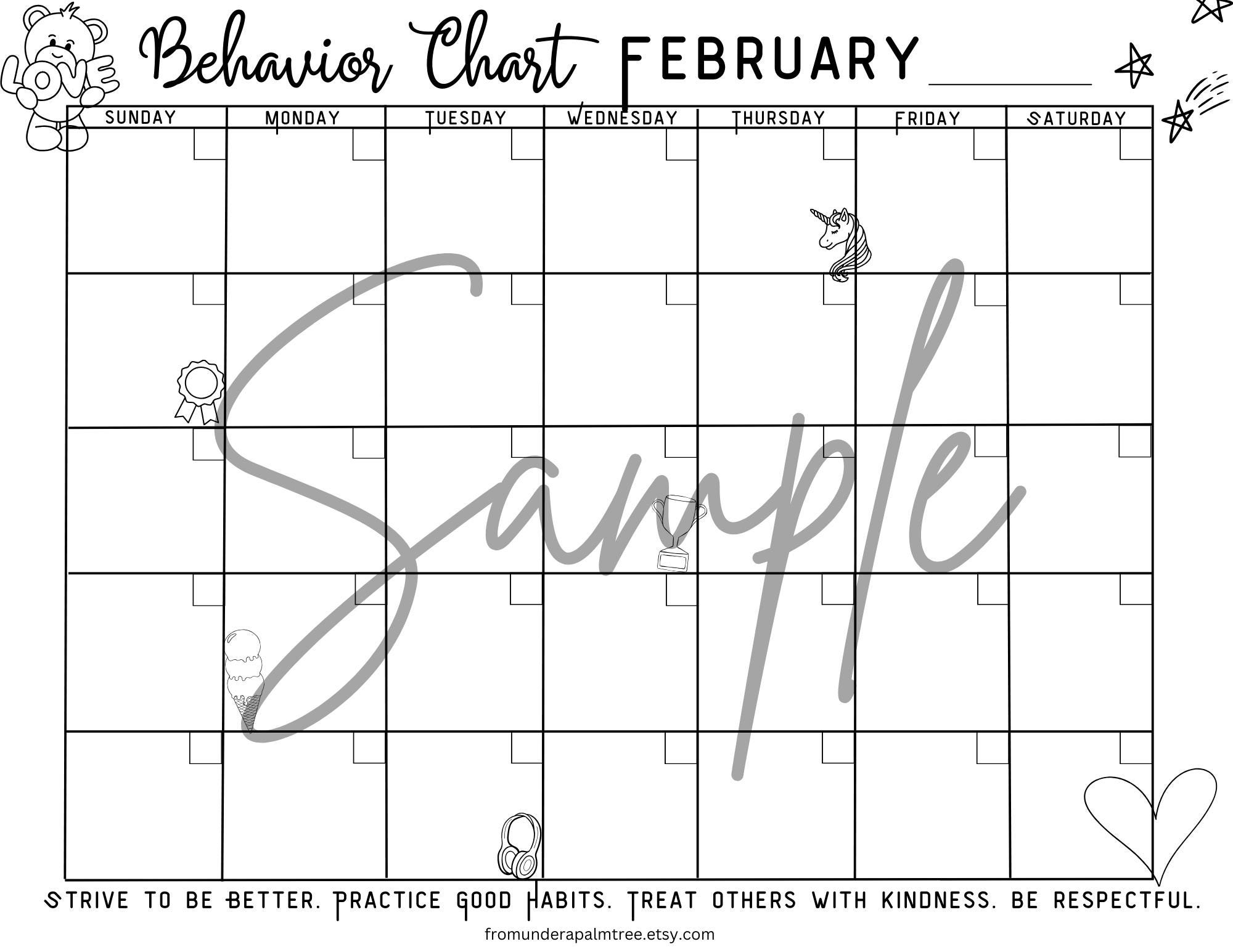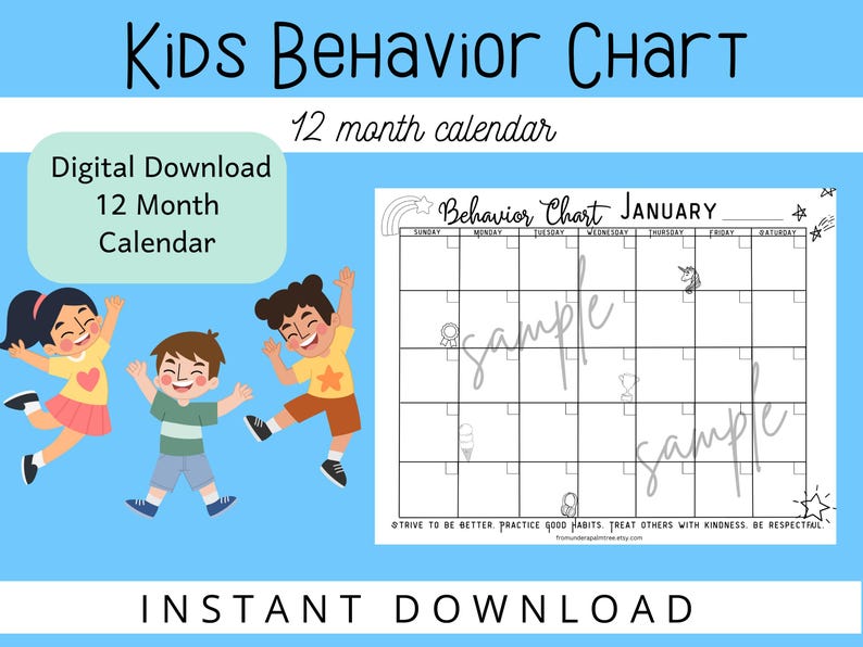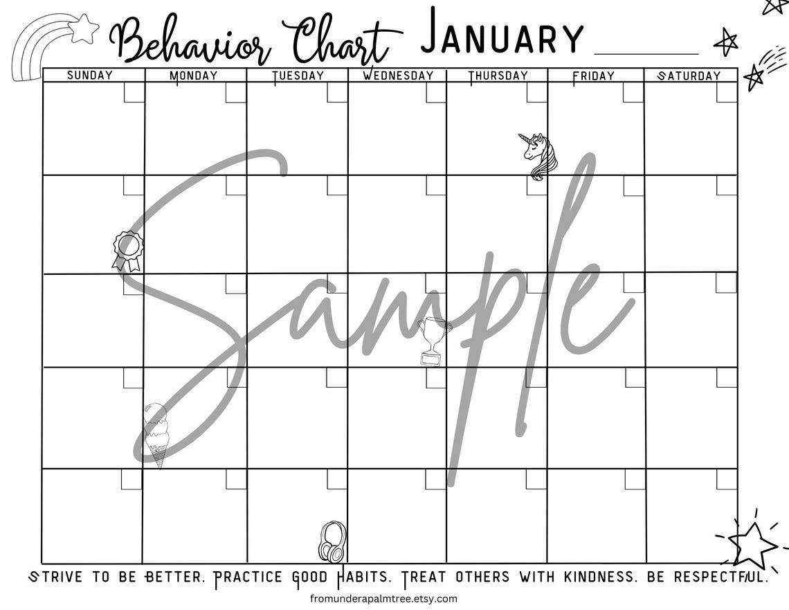Kids Behavior Chart: 12 month Reward Calendar (digital Download) Etsy