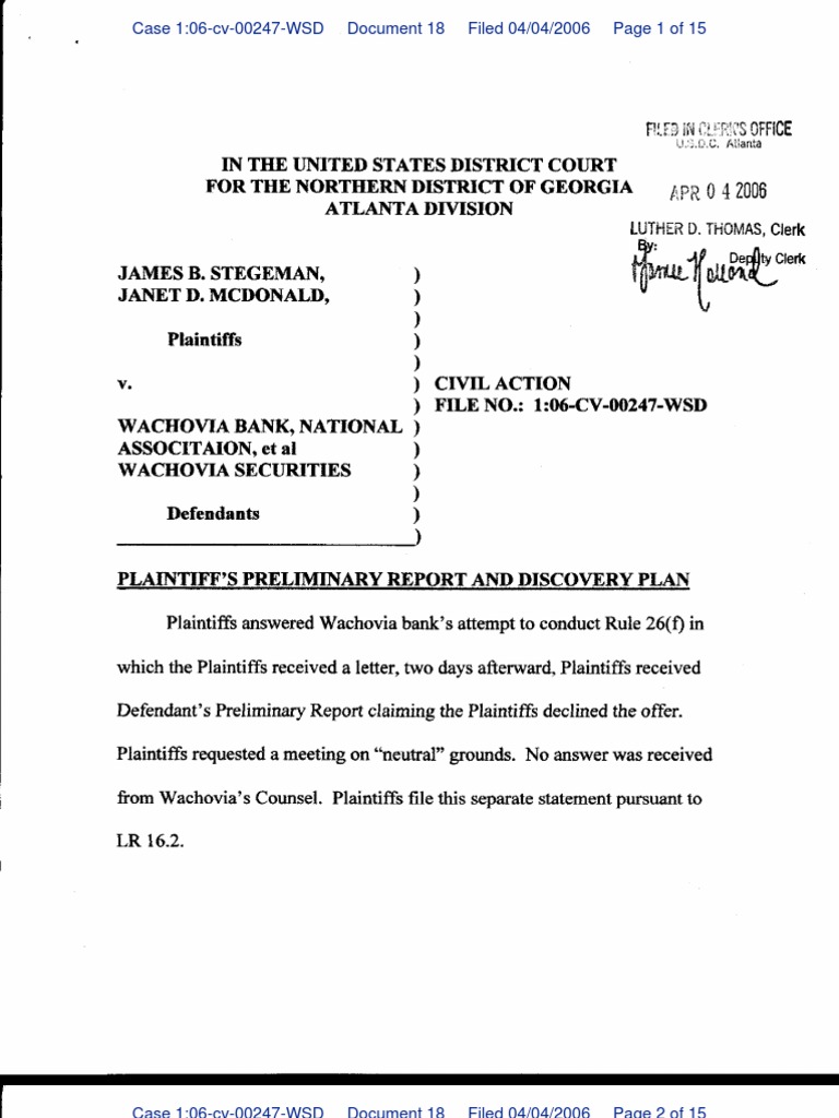 Plaintiffs Perliminary Report and Discovery Plan PDF Discovery