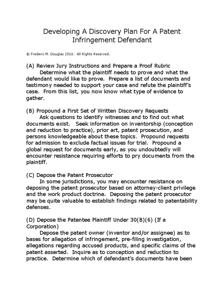 Developing A Discovery Plan For Patent Defendant PDF Discovery (Law