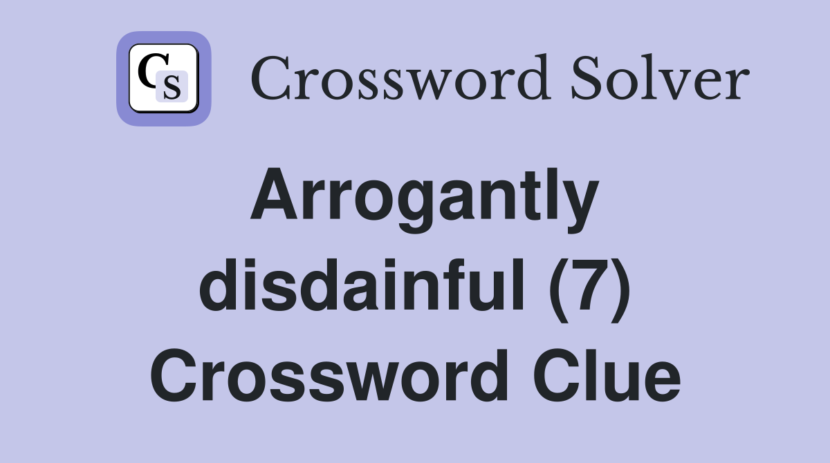 Arrogantly disdainful (7) Crossword Clue Answers Crossword Solver