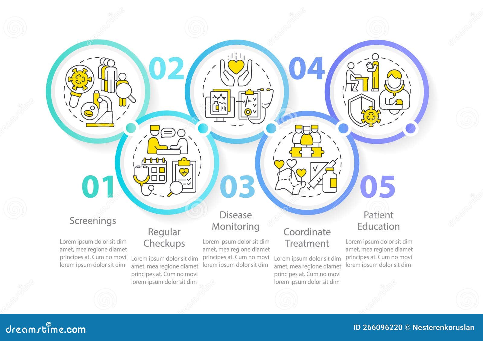 Premium Vector Disease monitoring steps blue circle infographic template