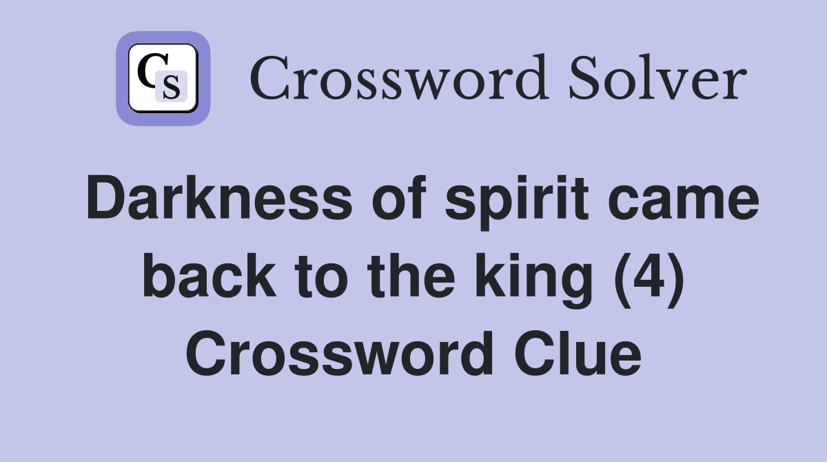 Darkness of spirit came back to the king (4) Crossword Clue Answers