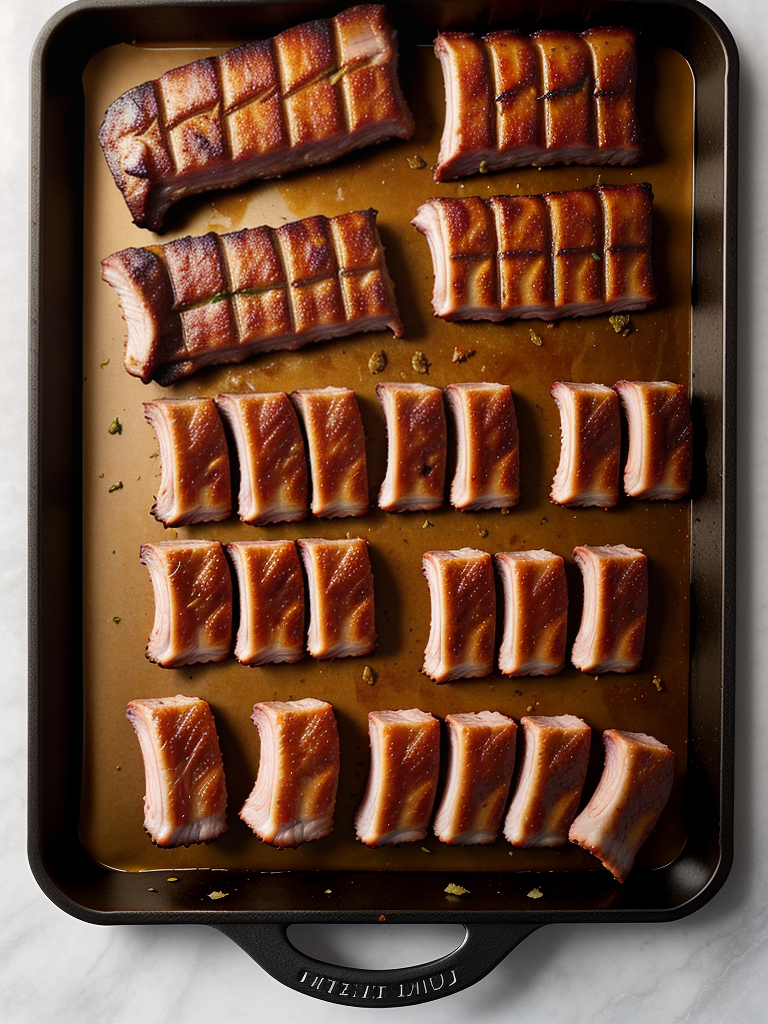 Deliciously Smoked Pork Belly Slices Arranged Neatly on a Baking Tray